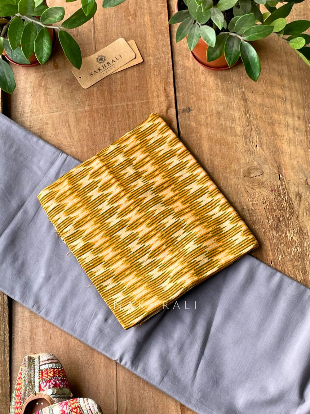 Sutra Grey Solid Cotton Saree with Printed Blouse