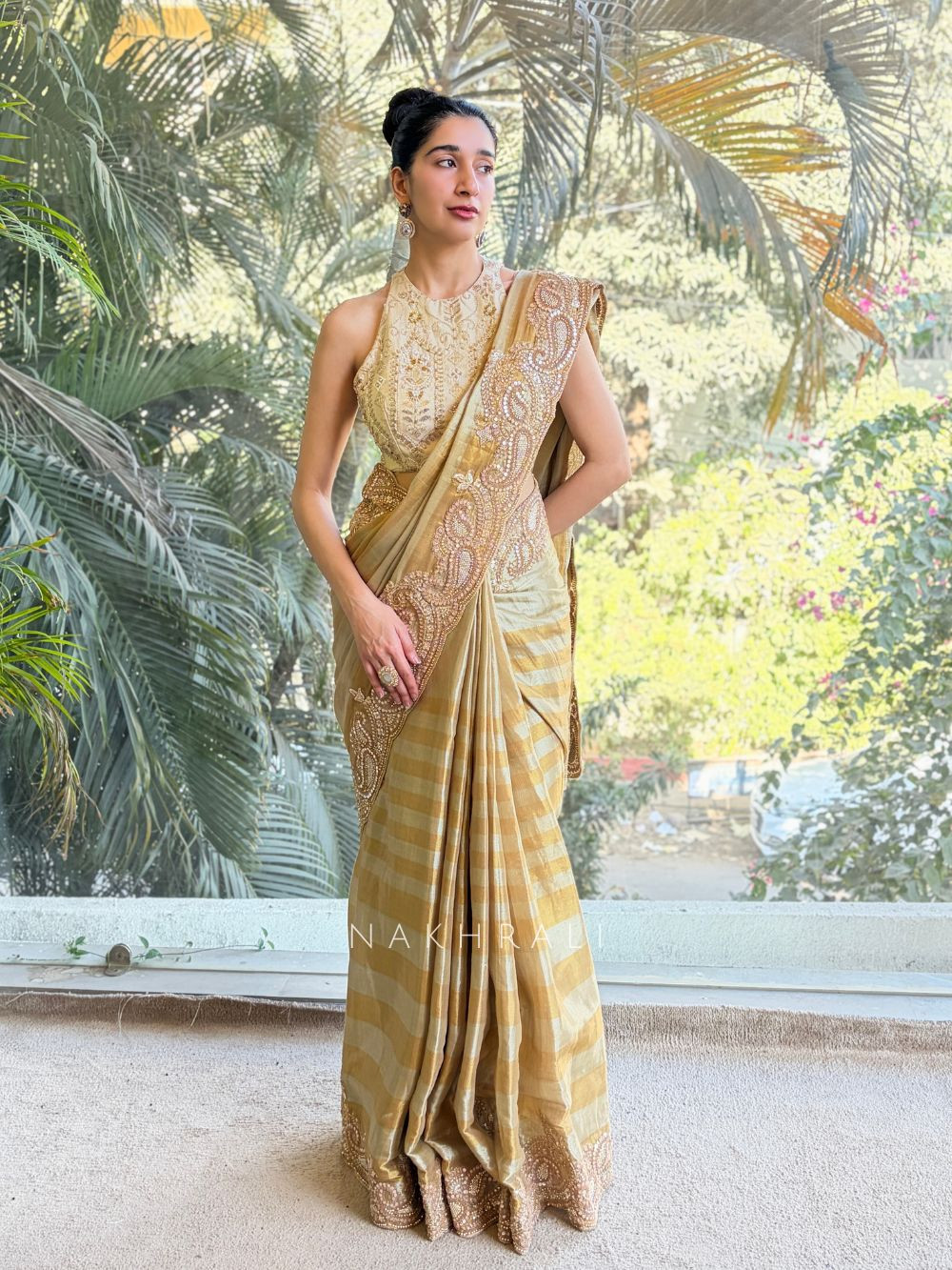 Festive Celebrations: Add jhumkas and soft curls to highlight the shimmer and detailing.