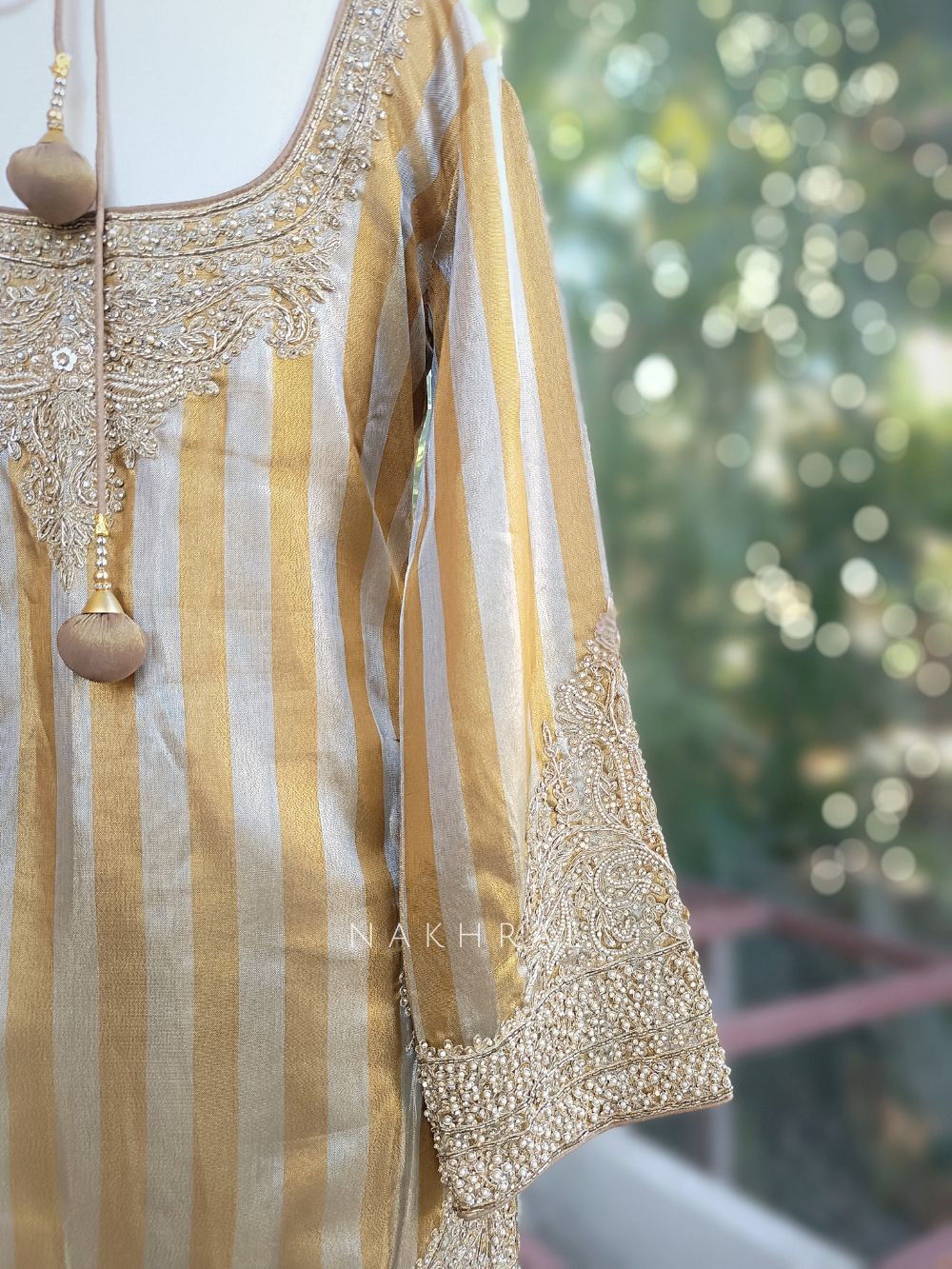 • Dry clean recommended to preserve the zari and bead embroidery