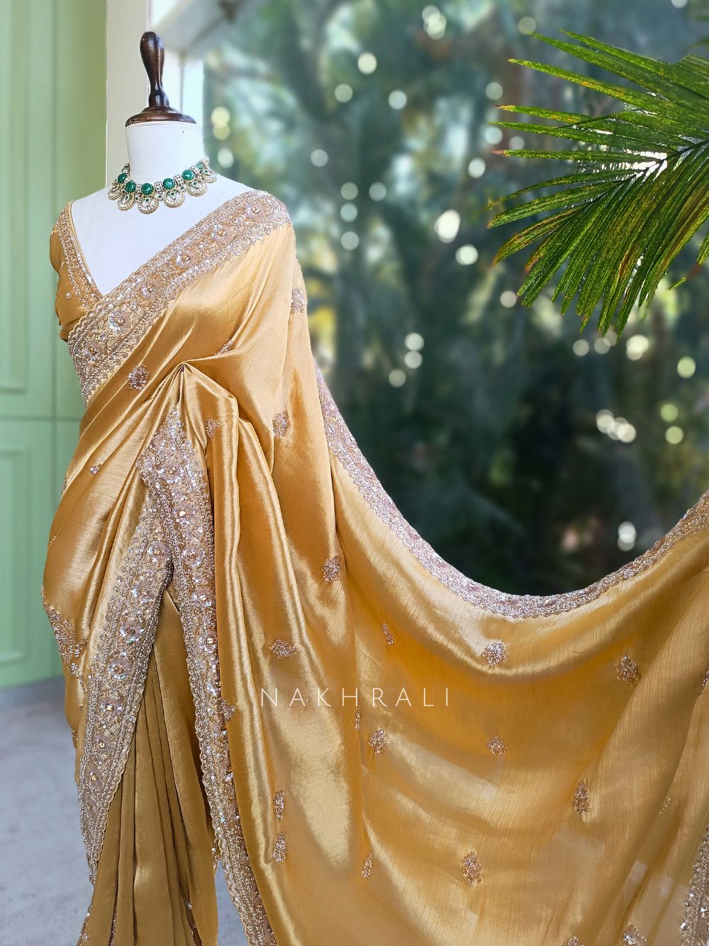 Swarna Golden Saree with Sequin Stone Embellished Border