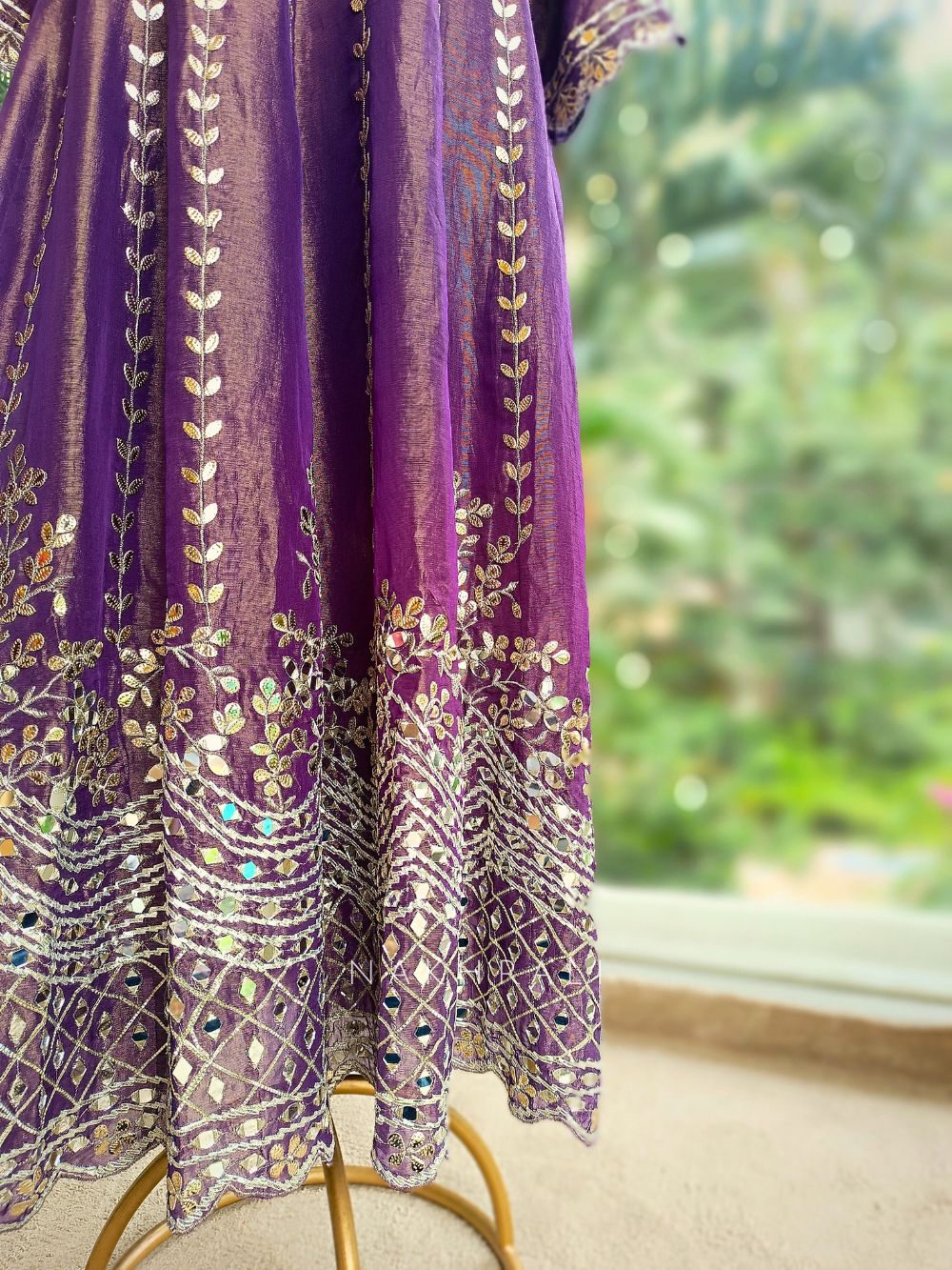 Tanira Purple Mirror Work Anarkali Set with Embroidered Dupatta