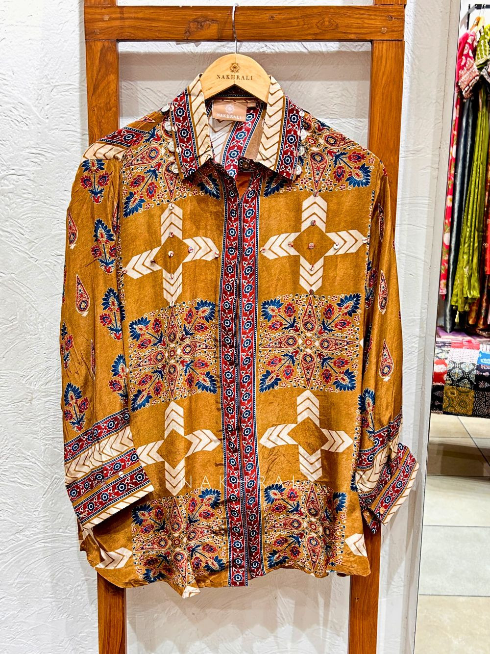 Tattva Brown Art Modal Printed Shirt