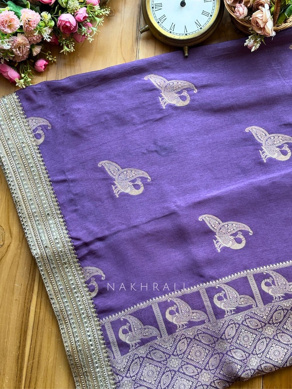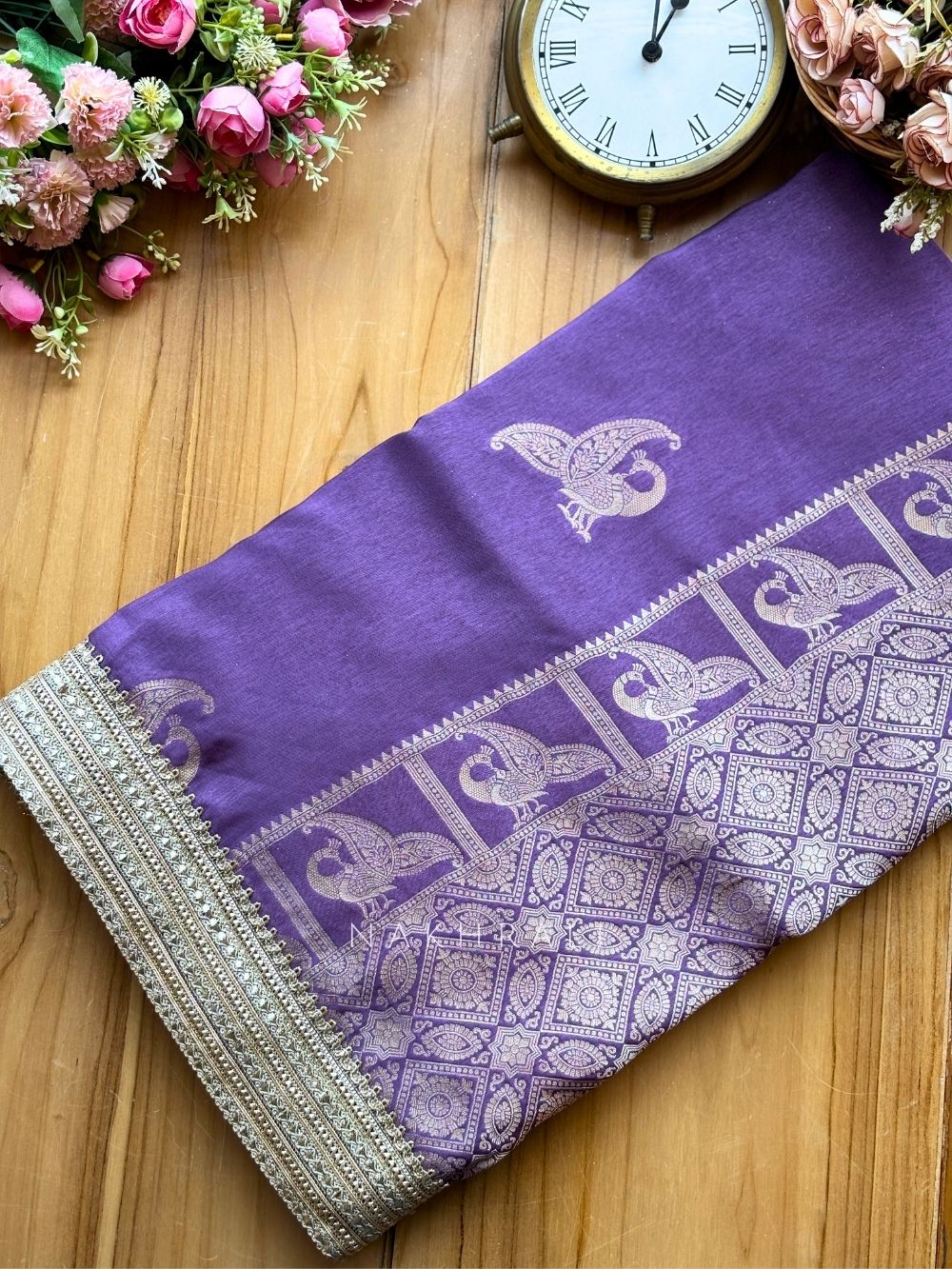 Tavira Lavender Saree with Broad Border and Unstitched Blouse Piece