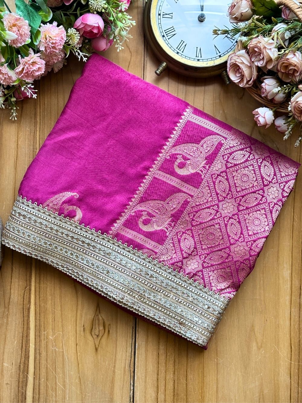 This saree is designed with a striking broad woven border that adds depth and richness to the overall look. The fabric drapes gracefully, offering a fluid and elegant silhouette suitable for various occasions. It comes with a matching unstitched blouse piece, allowing customization as per preferred style. Perfect for festive celebrations, cultural gatherings, and special events where timeless elegance stands out.