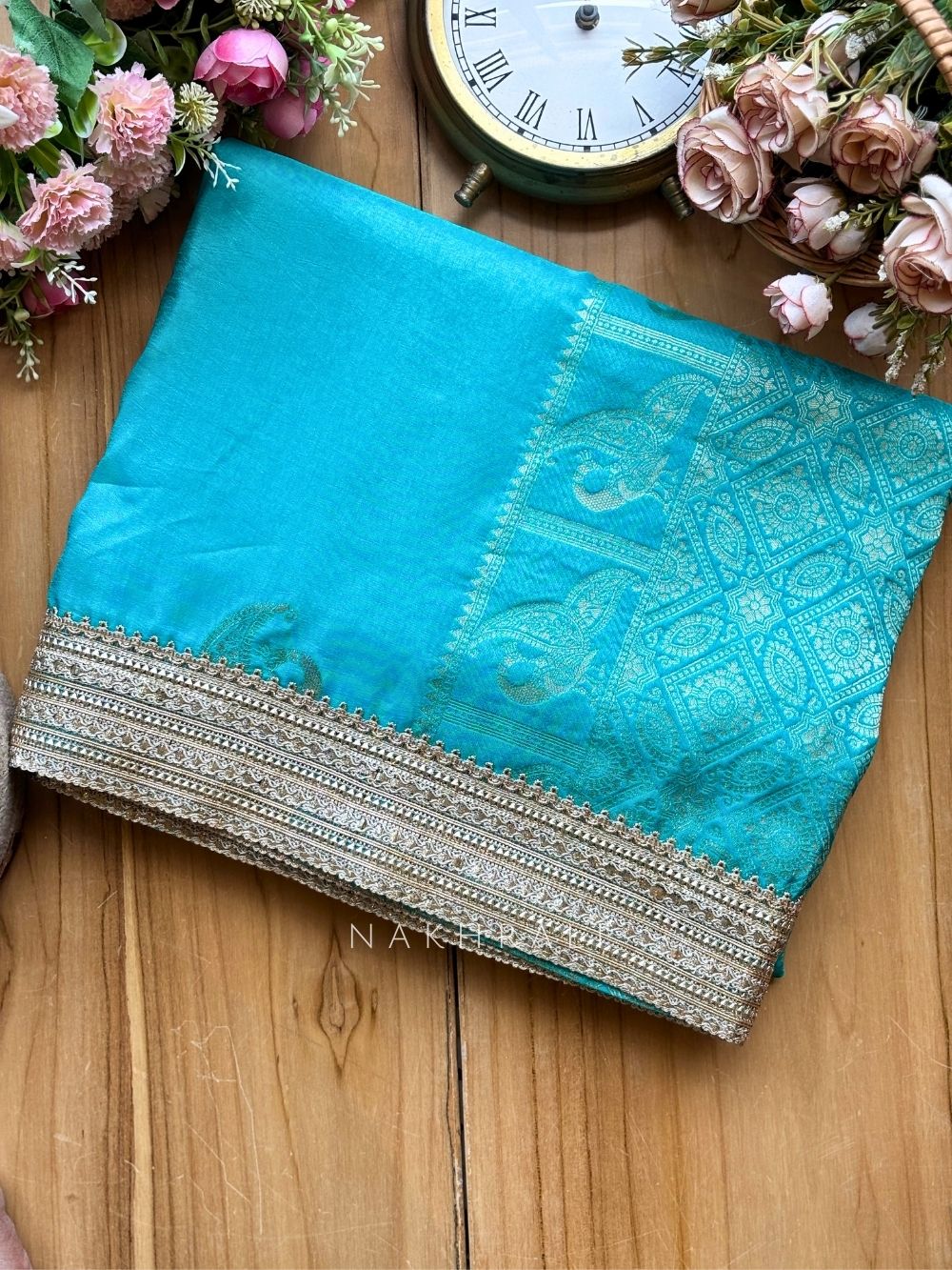 Tavira Rama Saree with Broad Border and Unstitched Blouse Piece