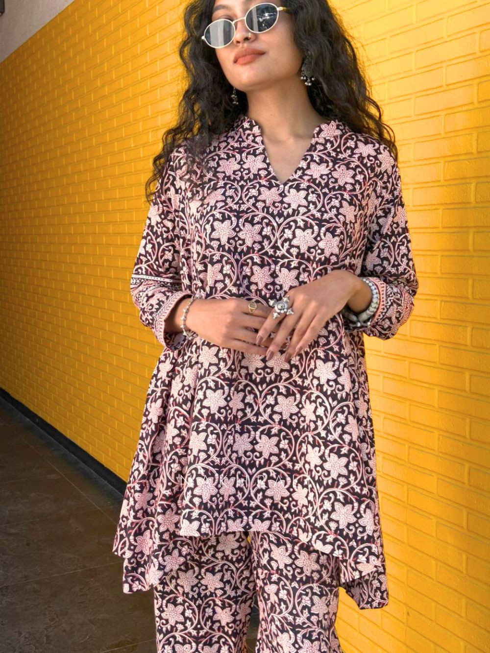 • Casual Outings: Add statement earrings and block heels to elevate the printed co-ord without losing comfort