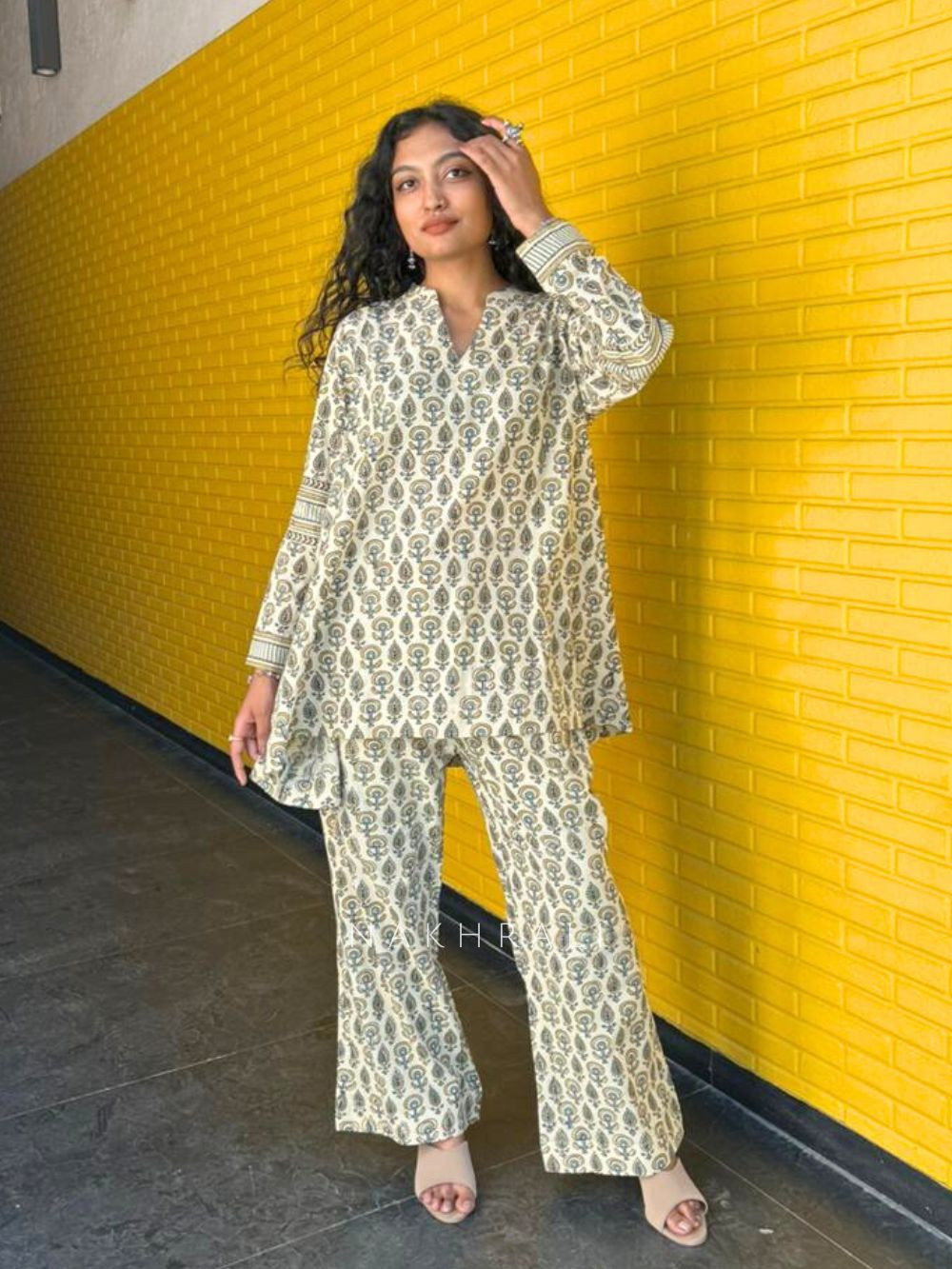 The Tulip Co-ord Set is designed for everyday ease with a refined, wearable charm. Crafted in breathable cotton, this set features a flared, flowy top that offers relaxed comfort and effortless movement, paired with straight-fit bottoms for a balanced silhouette. Available in four distinct prints and colourways, each variant brings its own personality while maintaining the same versatile structure. The soft cotton fabric makes it ideal for long hours, warm weather, and repeat wear, while the subtle prints keep it stylish without feeling overdone. Tulip is made for women who want comfort that still looks thoughtfully put together.