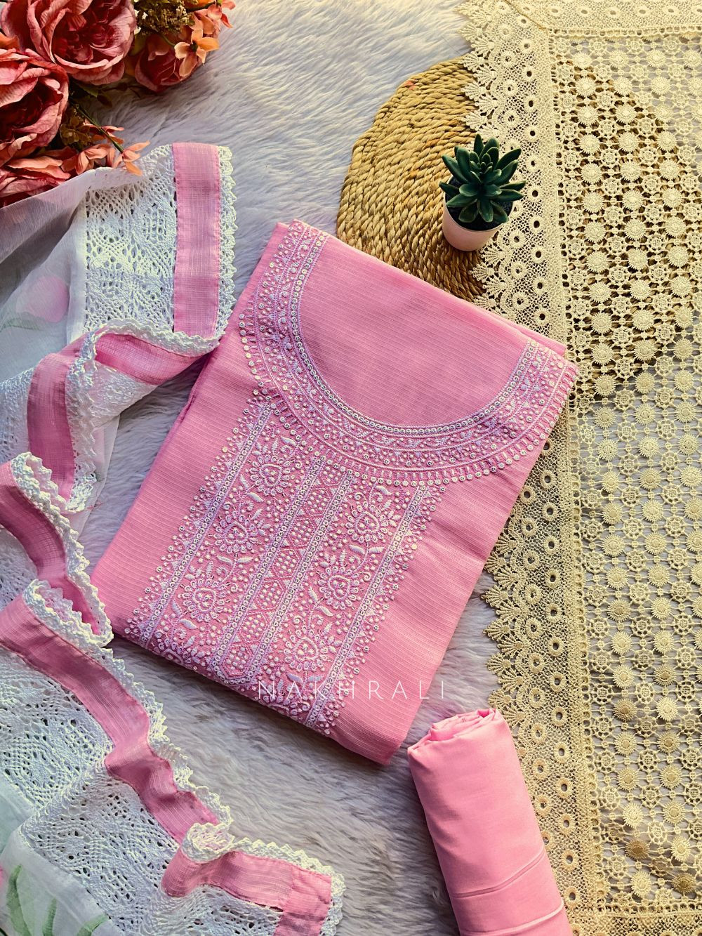 • Dry in shade to maintain embroidery and dupatta detailing.