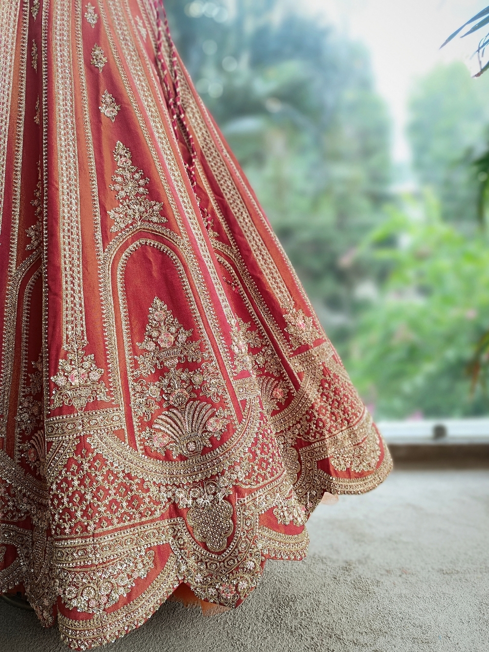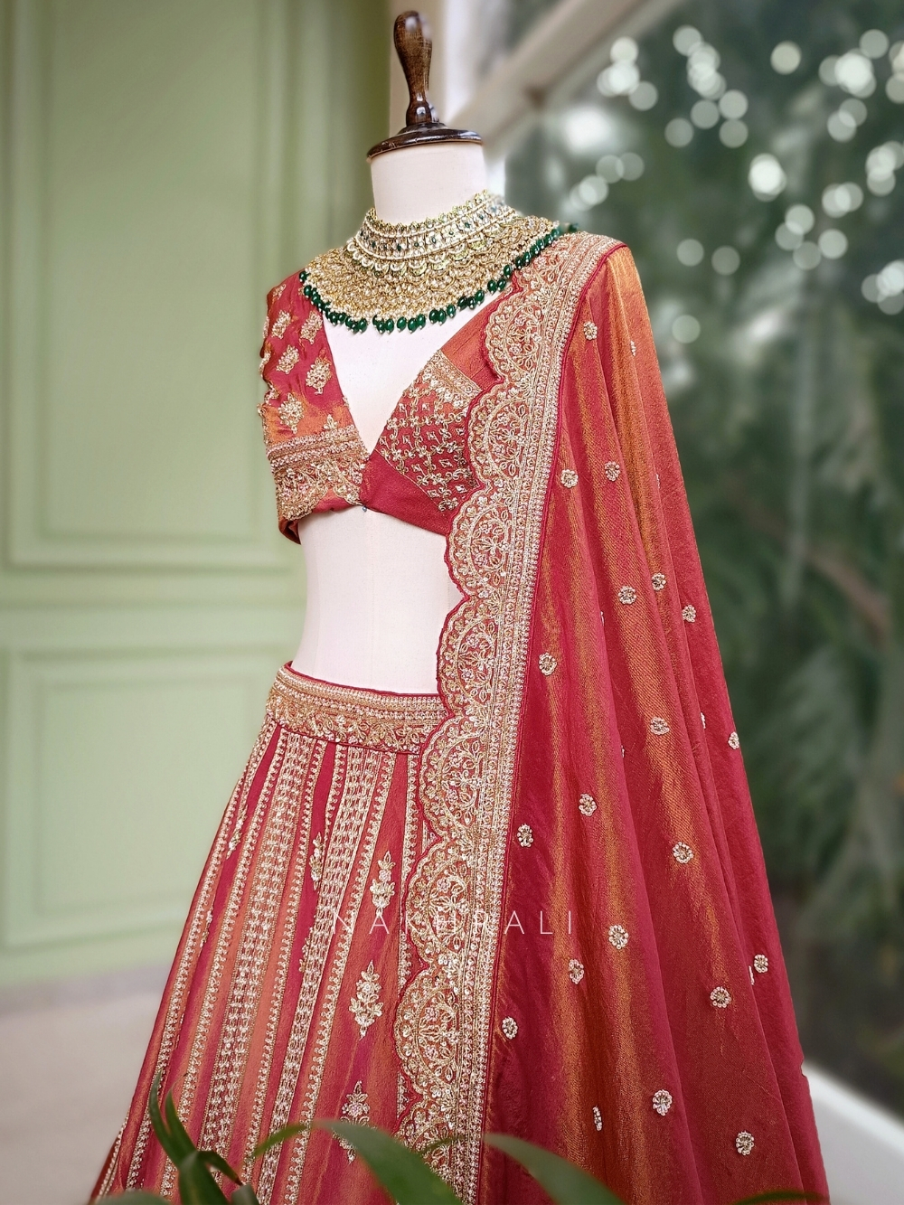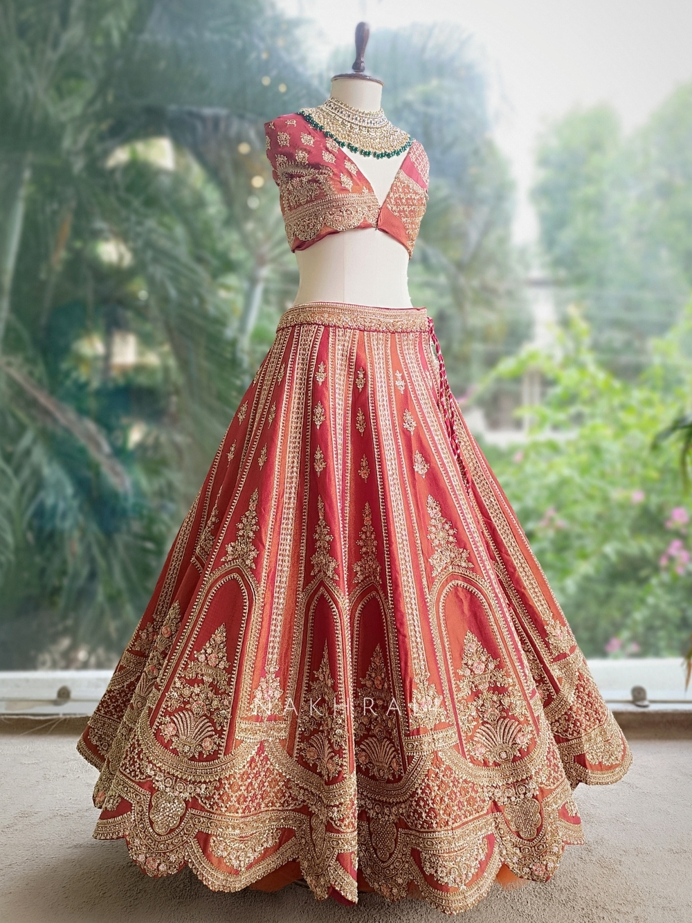 Vamika Rust Bridal Lehenga with Zari & Sequin Work