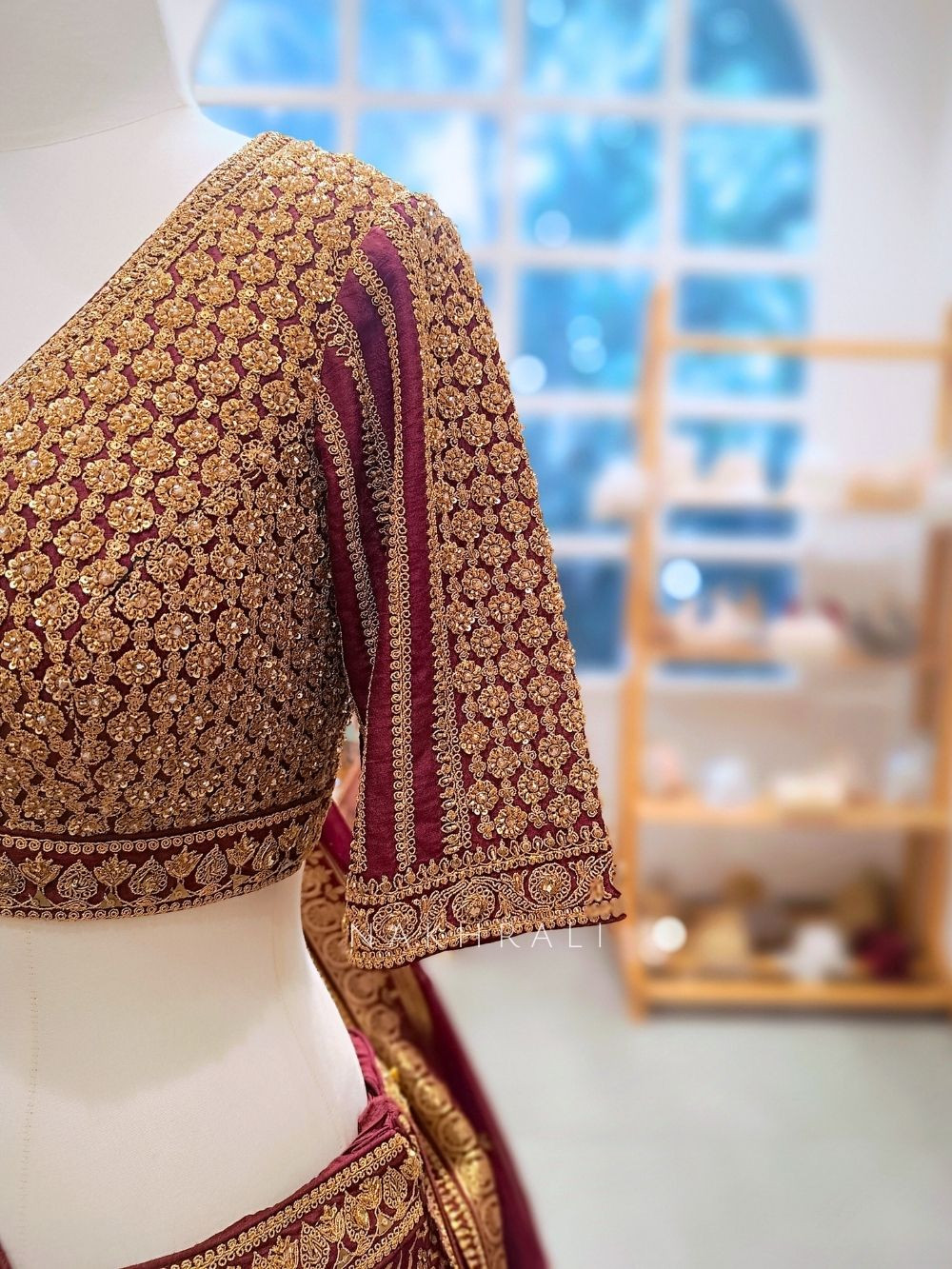Pair with a heavy gold choker set, layered bangles, and a matha patti for a complete bridal look.