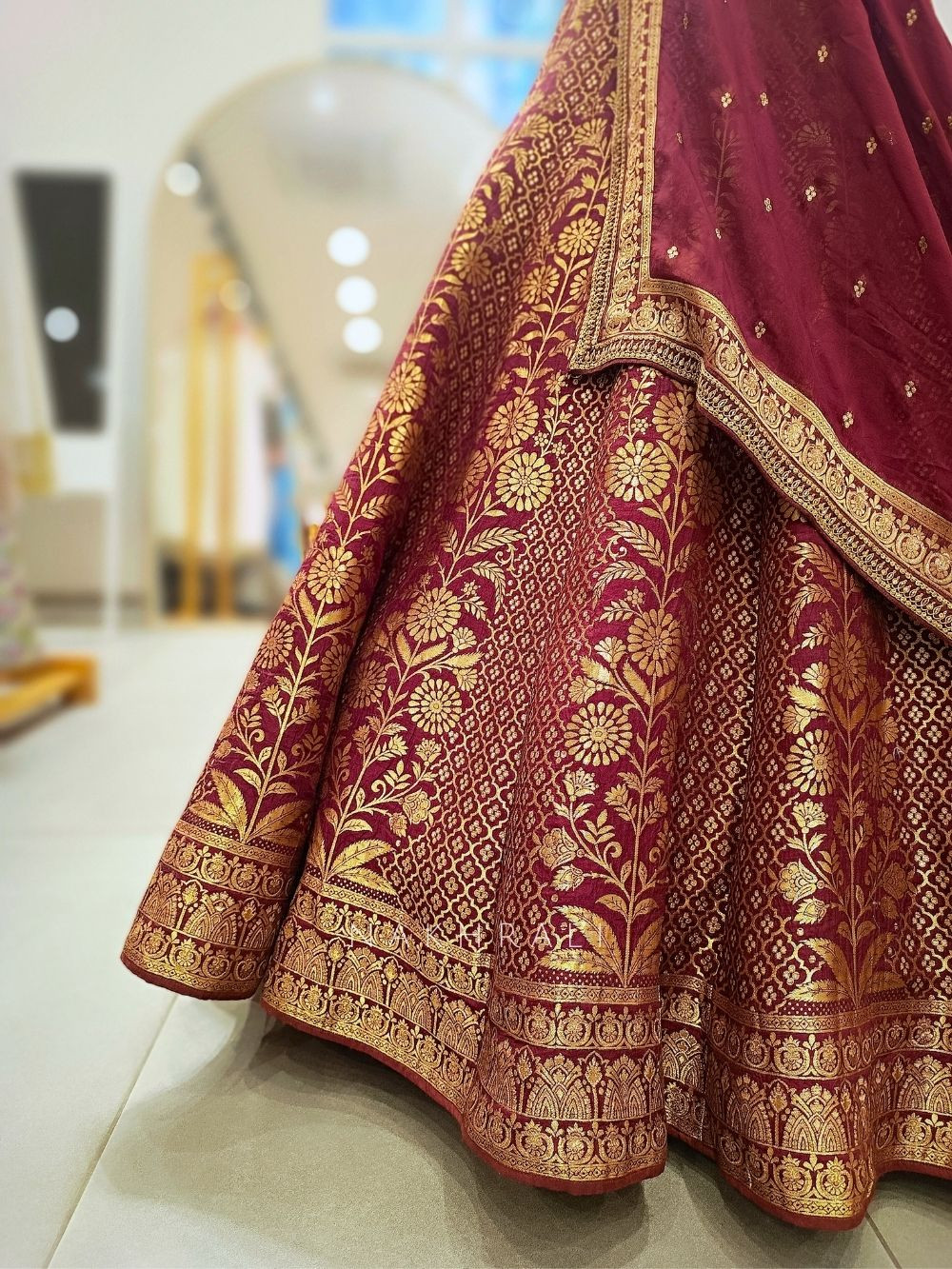 Veerangana Maroon Silk Bridal Lehenga with Zari Weave