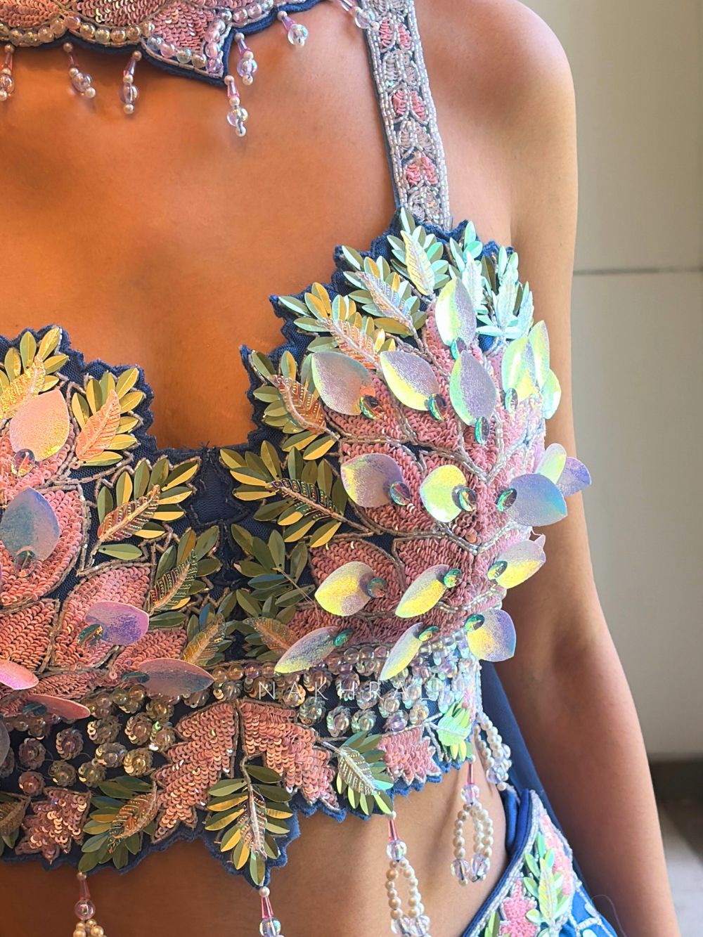 Velmira Blue Lehenga Set with Sequin Bead Work