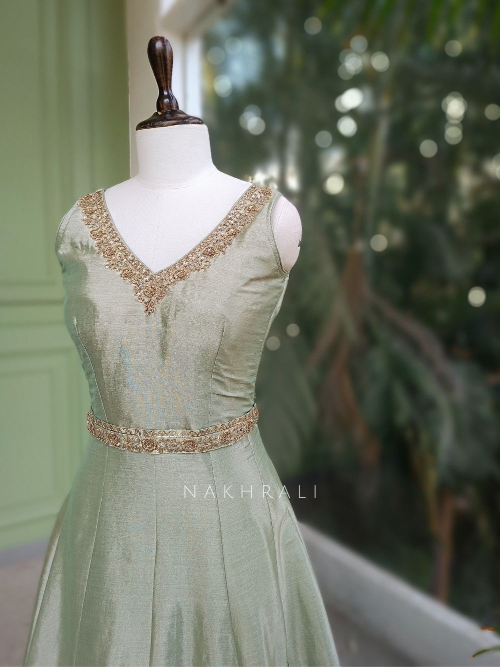 Virelle Green Silk Anarkali Suit Set with Zari and Sequin Work