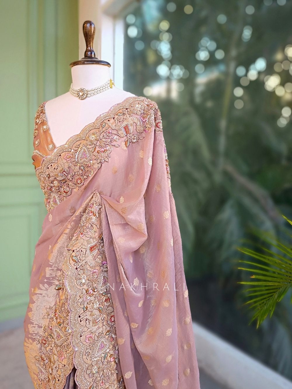 Festive Gatherings: Style with statement jhumkas and a sleek bun to highlight the border work.