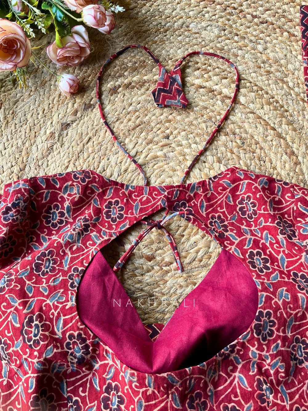 The Wabi-Sabi Cotton Blouse Collection brings together three distinctive prints that blend chevrons, florals and artisan-inspired motifs in a bold, earthy palette. Designed with a sculpted front, structured fit and a stylish cut-out back, each blouse offers a modern yet rooted aesthetic. The long sleeves add versatility while the tie-up back ensures comfort and adjustability. Perfect for sarees, drapes and fusion styling, these blouses effortlessly elevate everyday looks with their artistic charm.
