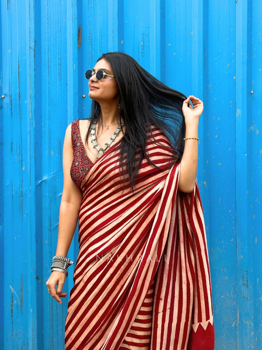The Whimsical Modal Stripe Saree is crafted in soft, flowy modal fabric that drapes effortlessly and feels light on the skin. Featuring timeless stripe patterns, this saree strikes a perfect balance between relaxed charm and everyday elegance. It comes with a matching unstitched blouse piece, allowing it to be stitched in the preferred style. Ideal for casual outings, workwear, and laid-back gatherings, this saree is easy to style, easy to wear, and perfect for those who love understated statement dressing.