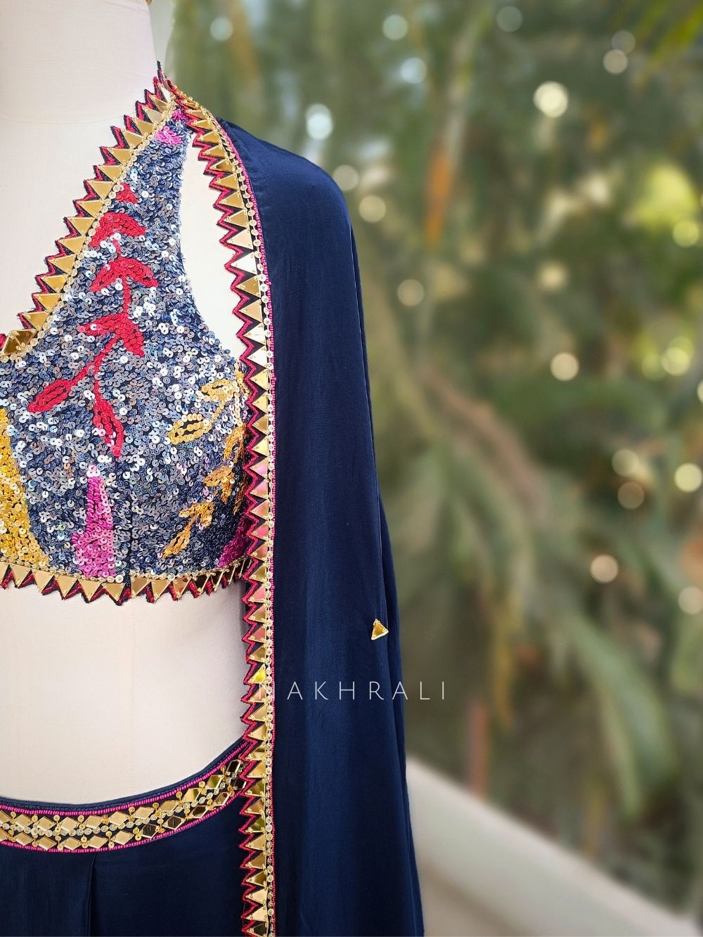 Willow Navy Blue Halter Indo-Western Set with Cape Shrug