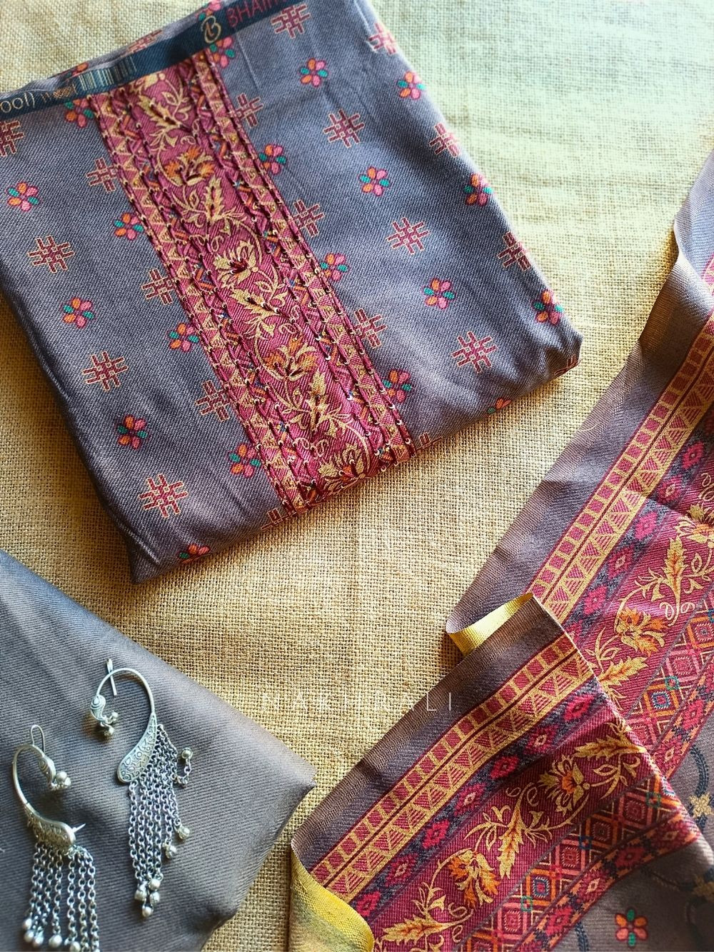 This woolen dress material brings together warmth, comfort and traditional artistry. The fabric feels soft and cozy, ideal for winter days, while the beautifully detailed ethnic print adds richness and vibrance to the outfit. Designed for a graceful fall and easy tailoring, it is perfect for daily wear, casual outings and winter festivities. A timeless addition for those who love heritage prints blended with modern comfort.