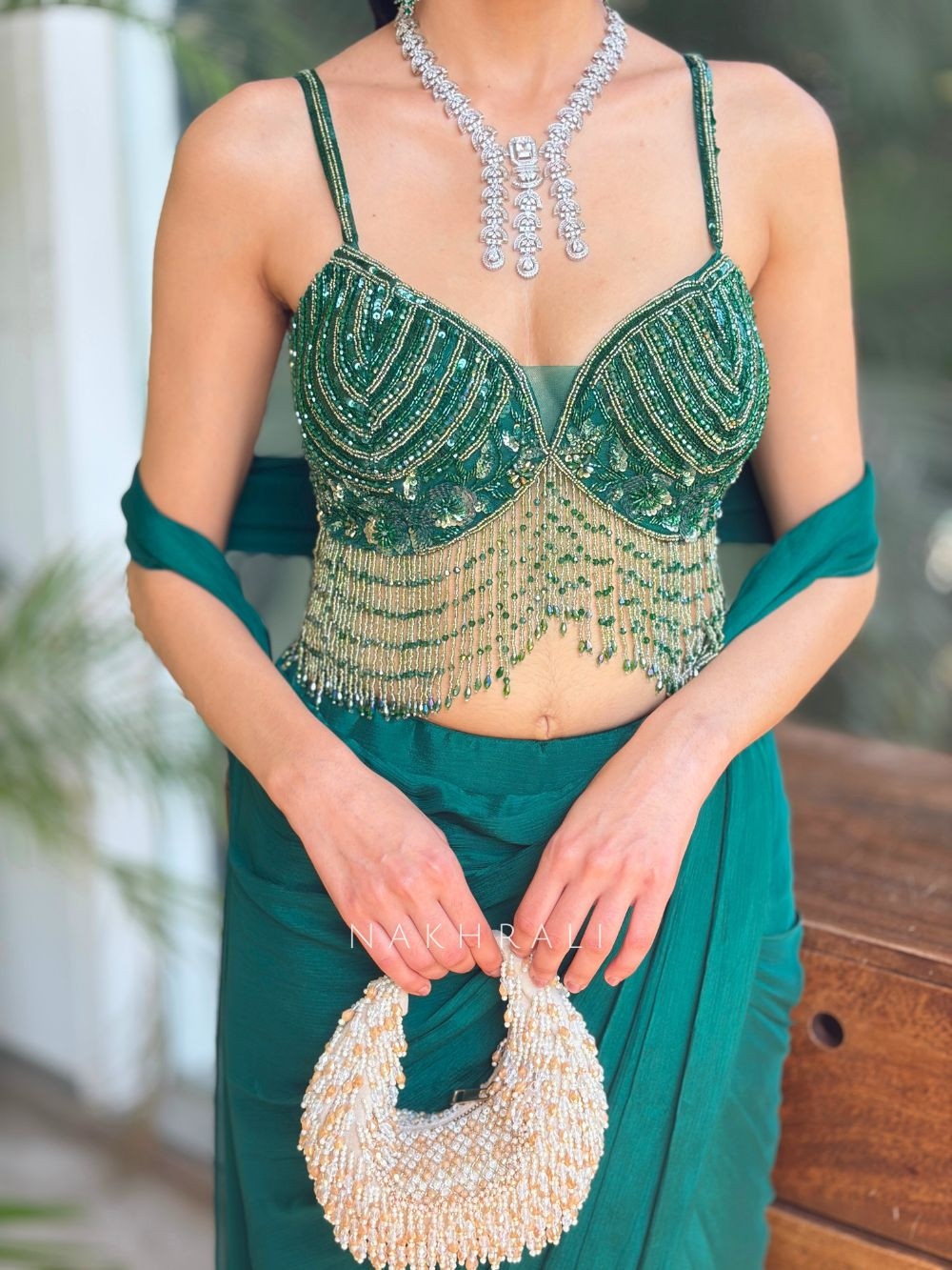 Zarreen Emerald Drape Saree Set with Handworked Blouse