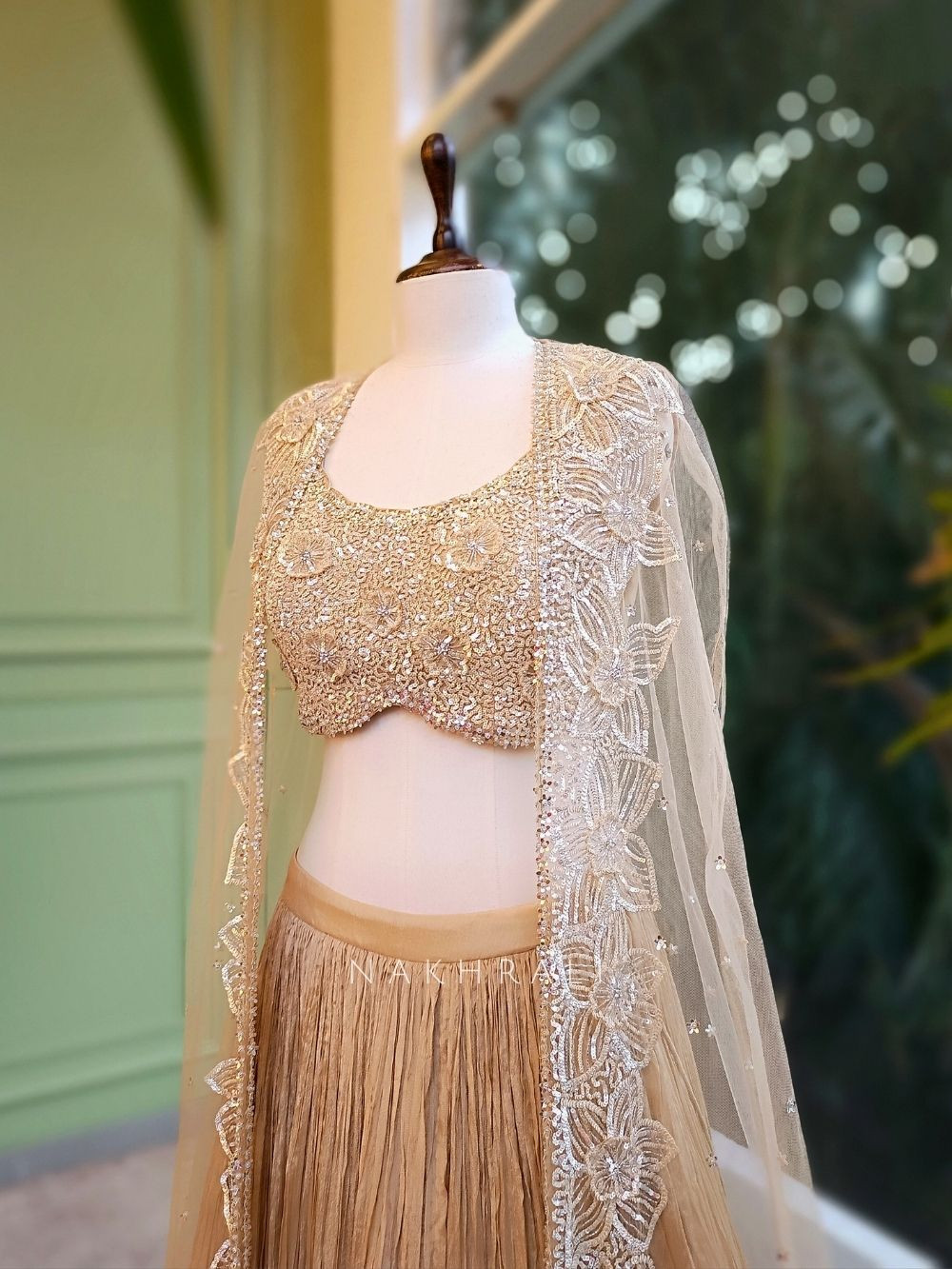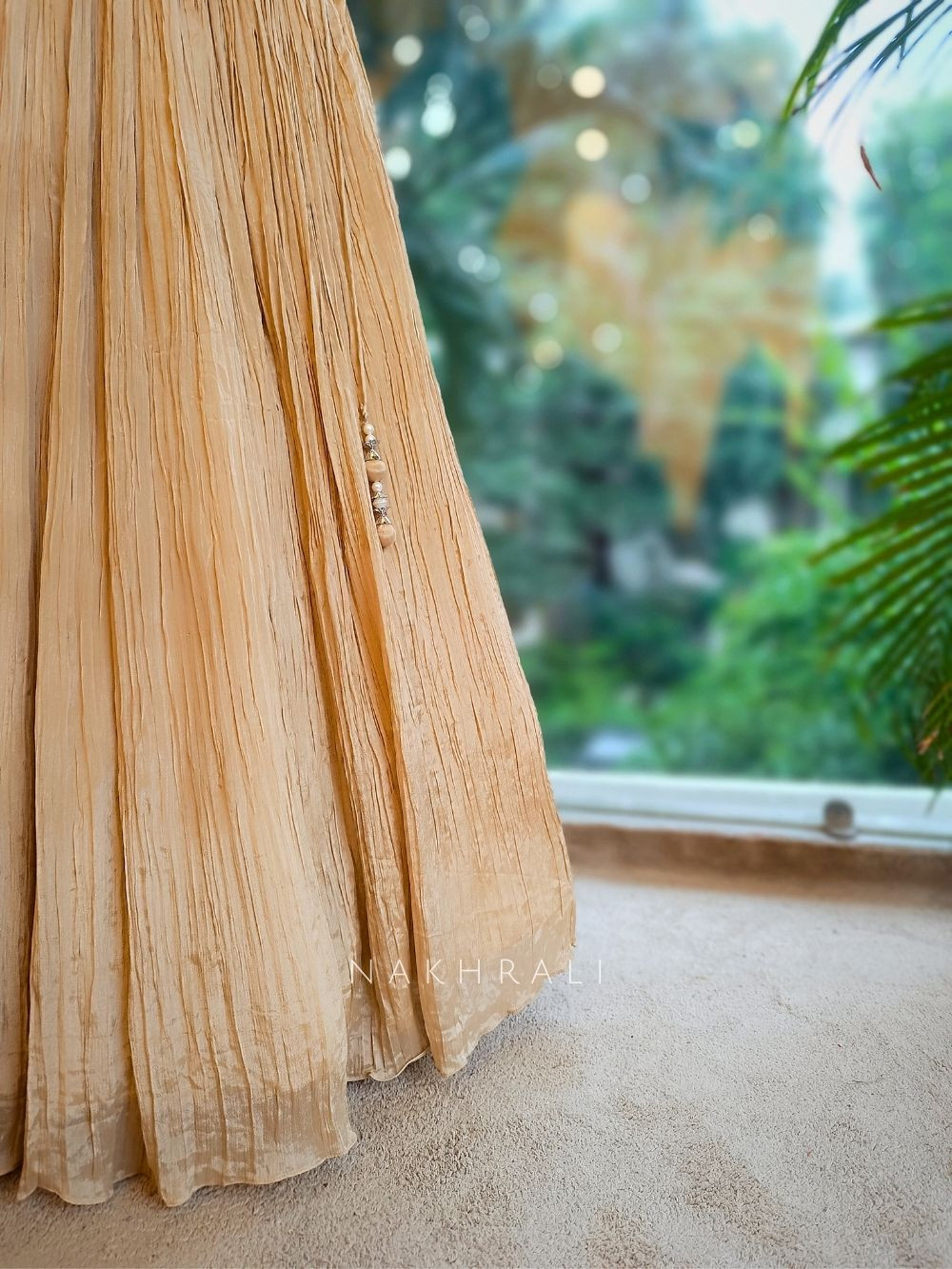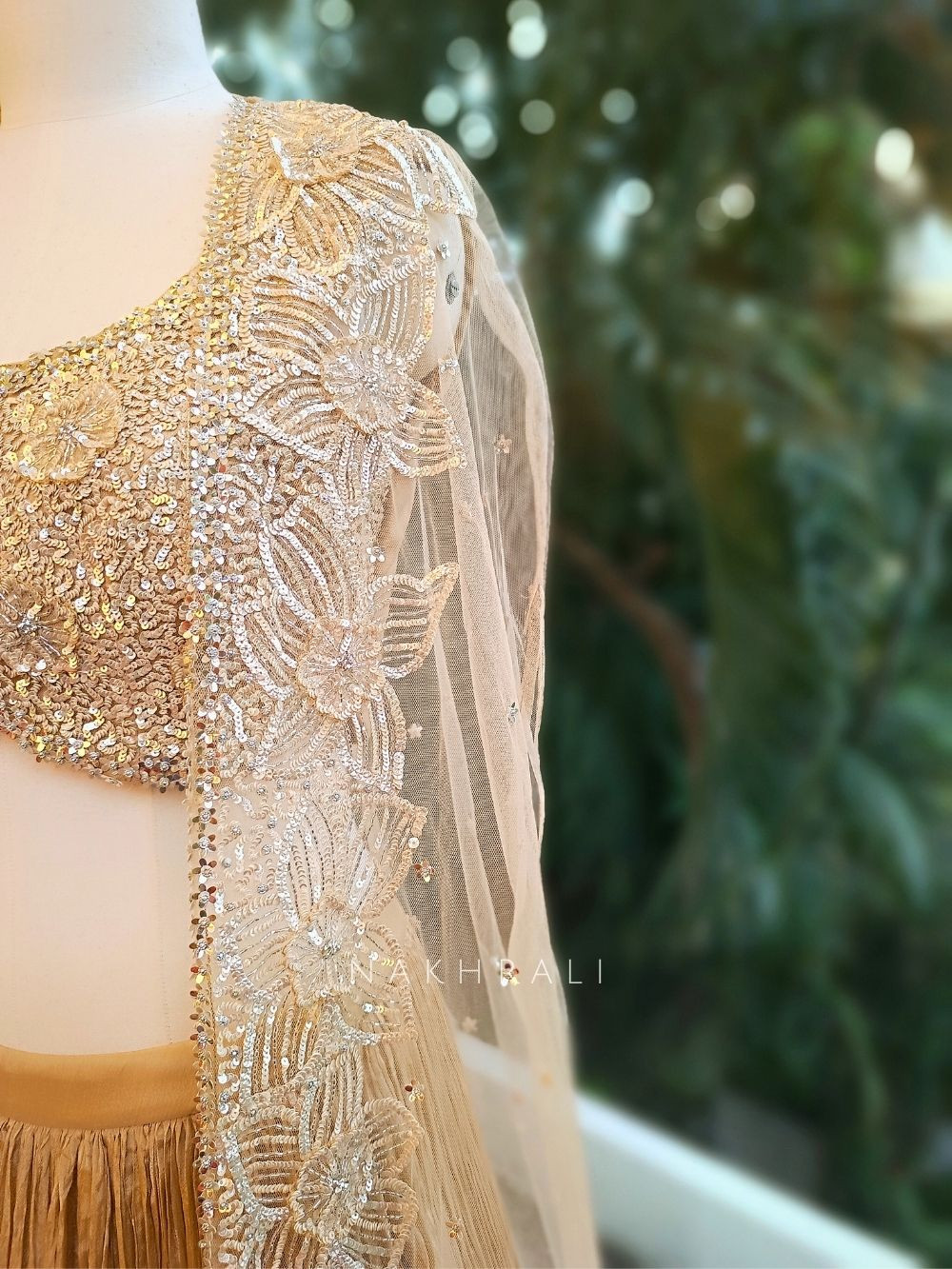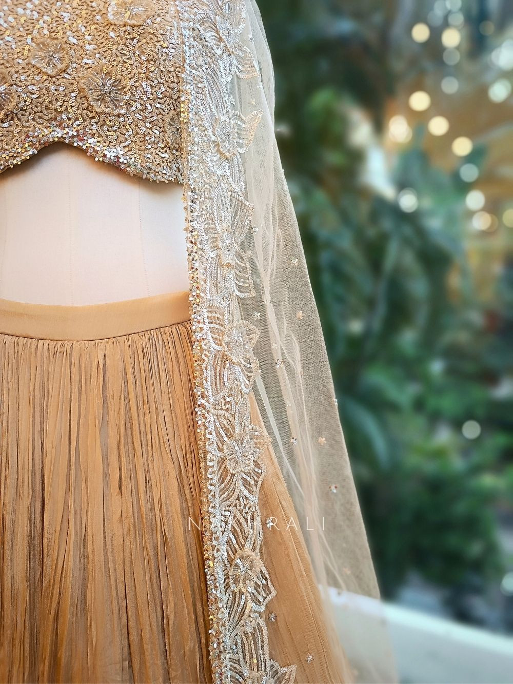 - Steam lightly to remove creases; avoid ironing on embellished areas.
