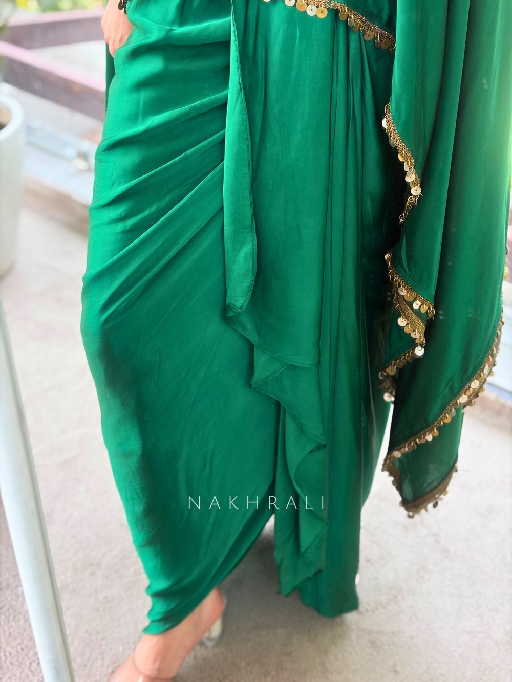 Zivara Green Drape Indo Western Set with Mirror and Sequin Work