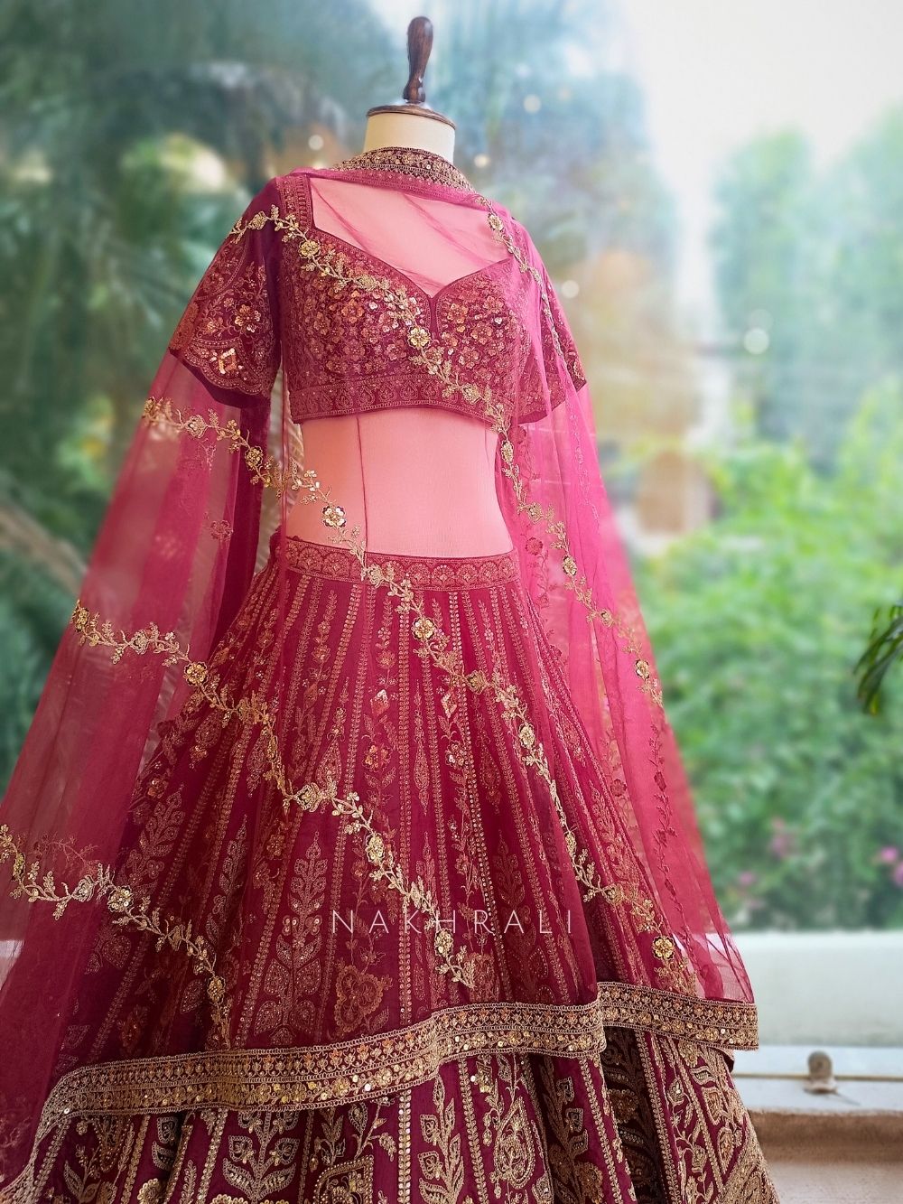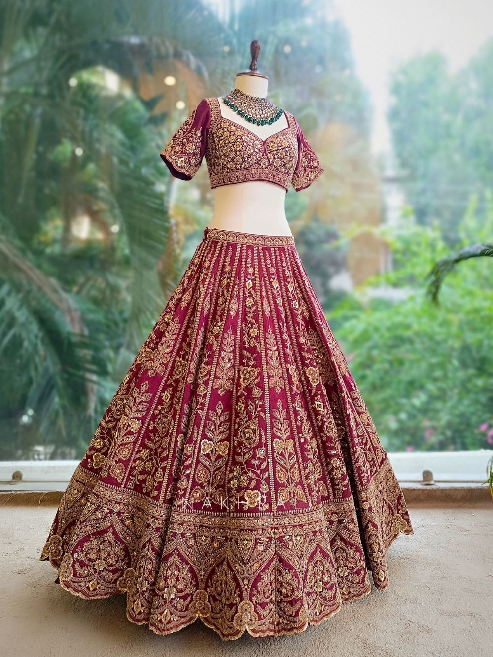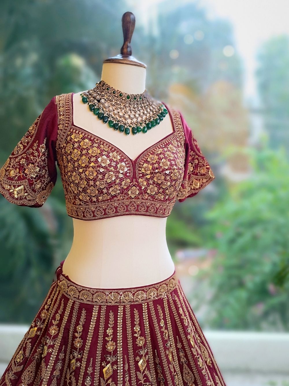 Zohra Maroon Bridal Lehenga with Hand Embroidery