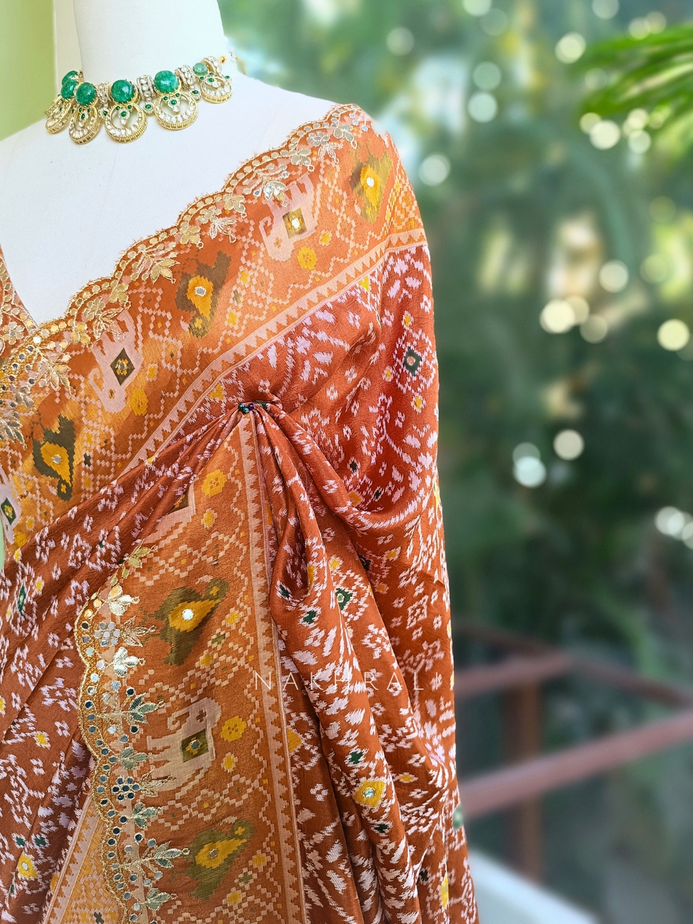 Zoraya Brown Ghatchola Saree with Elephant Motif Border