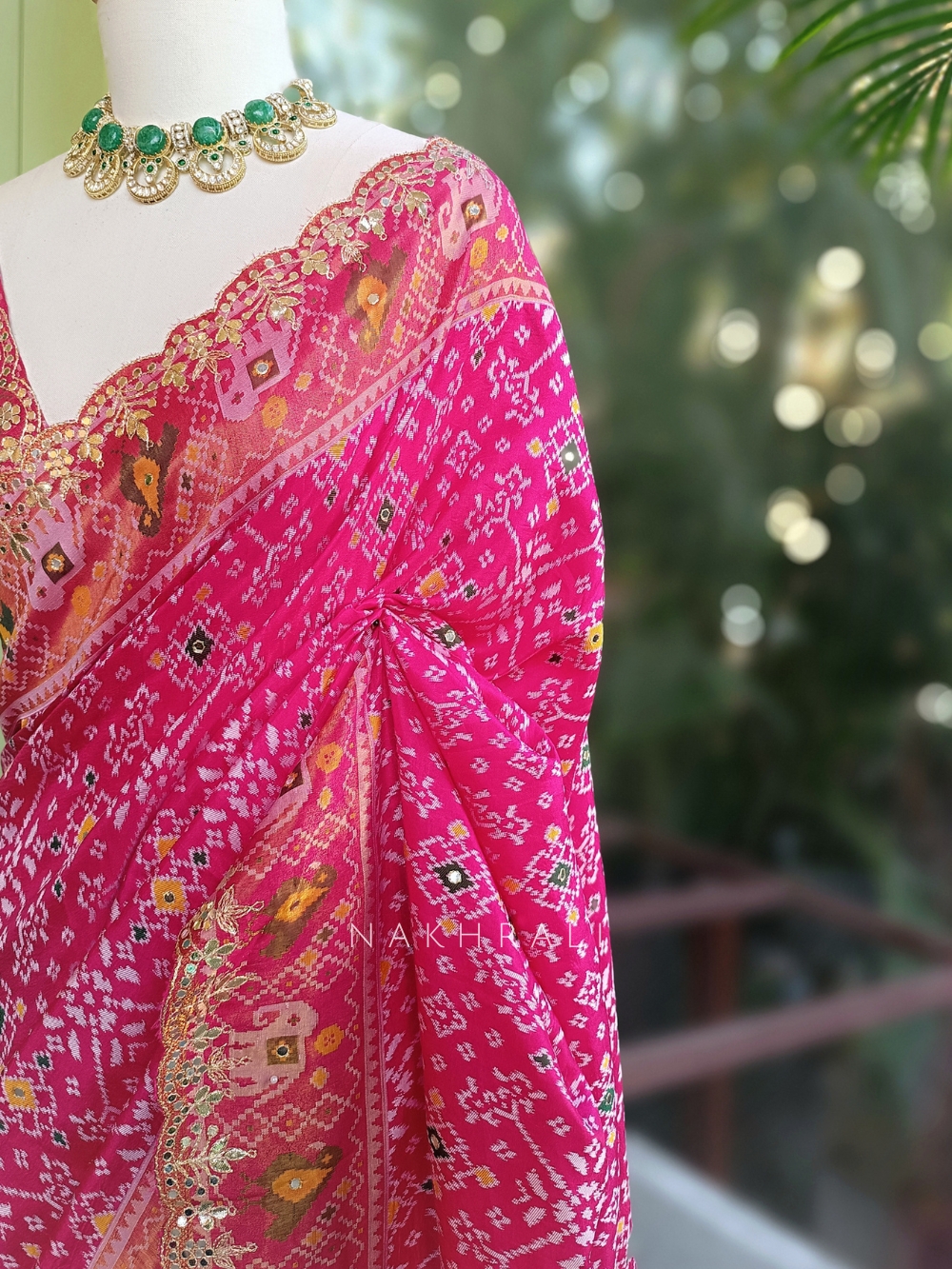 Zoraya Pink Patola Saree with Elephant Motif Border