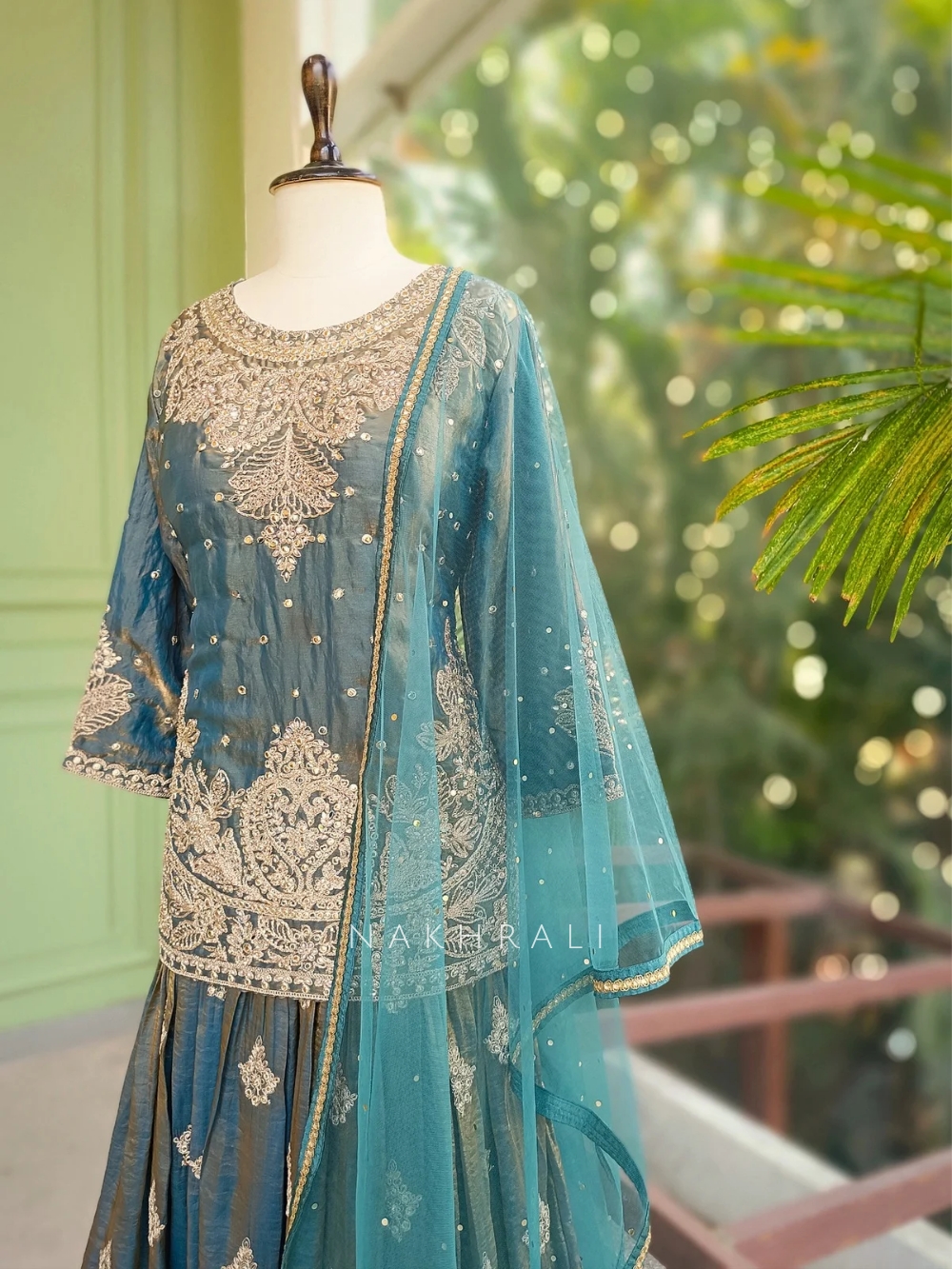 Zoraya Teal Blue Zari & Sequin Gharara Set