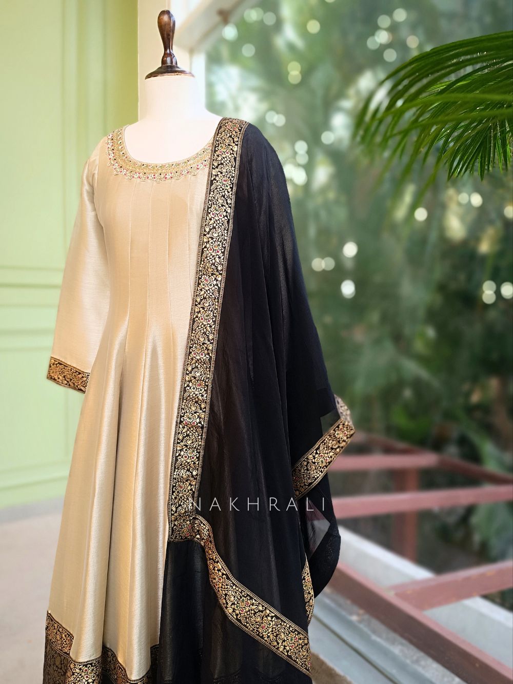 Festive Celebrations: Style with traditional jhumkas and stacked bangles to highlight the intricate embroidery.