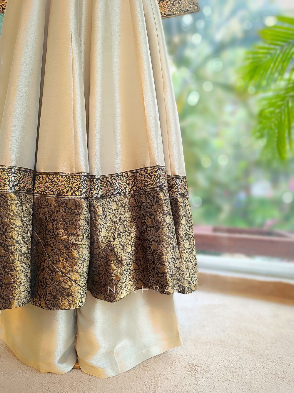 Bridal Trousseau: Pair with statement chandbali earrings, soft curls, and embellished heels for a graceful bridal celebration look.